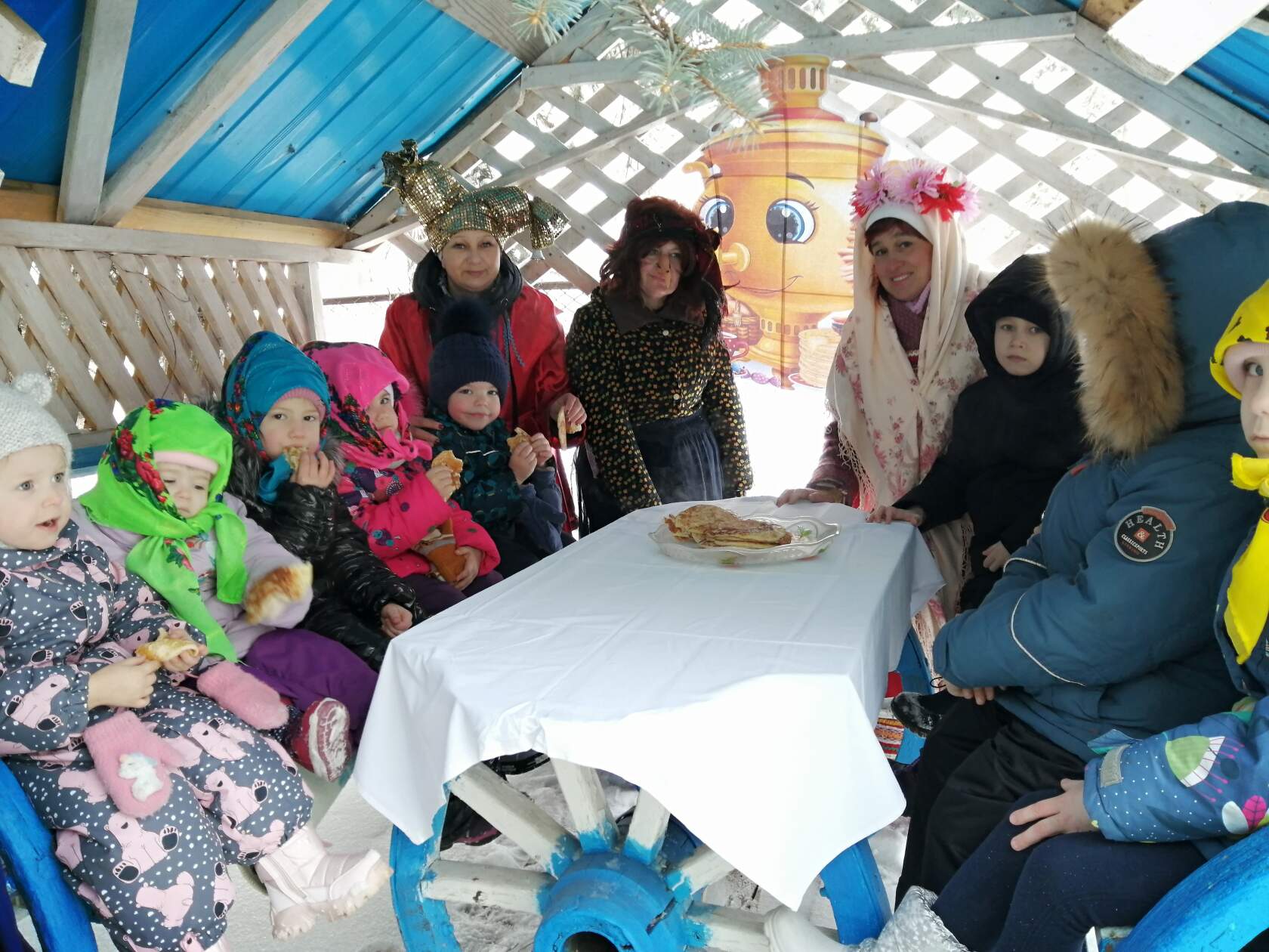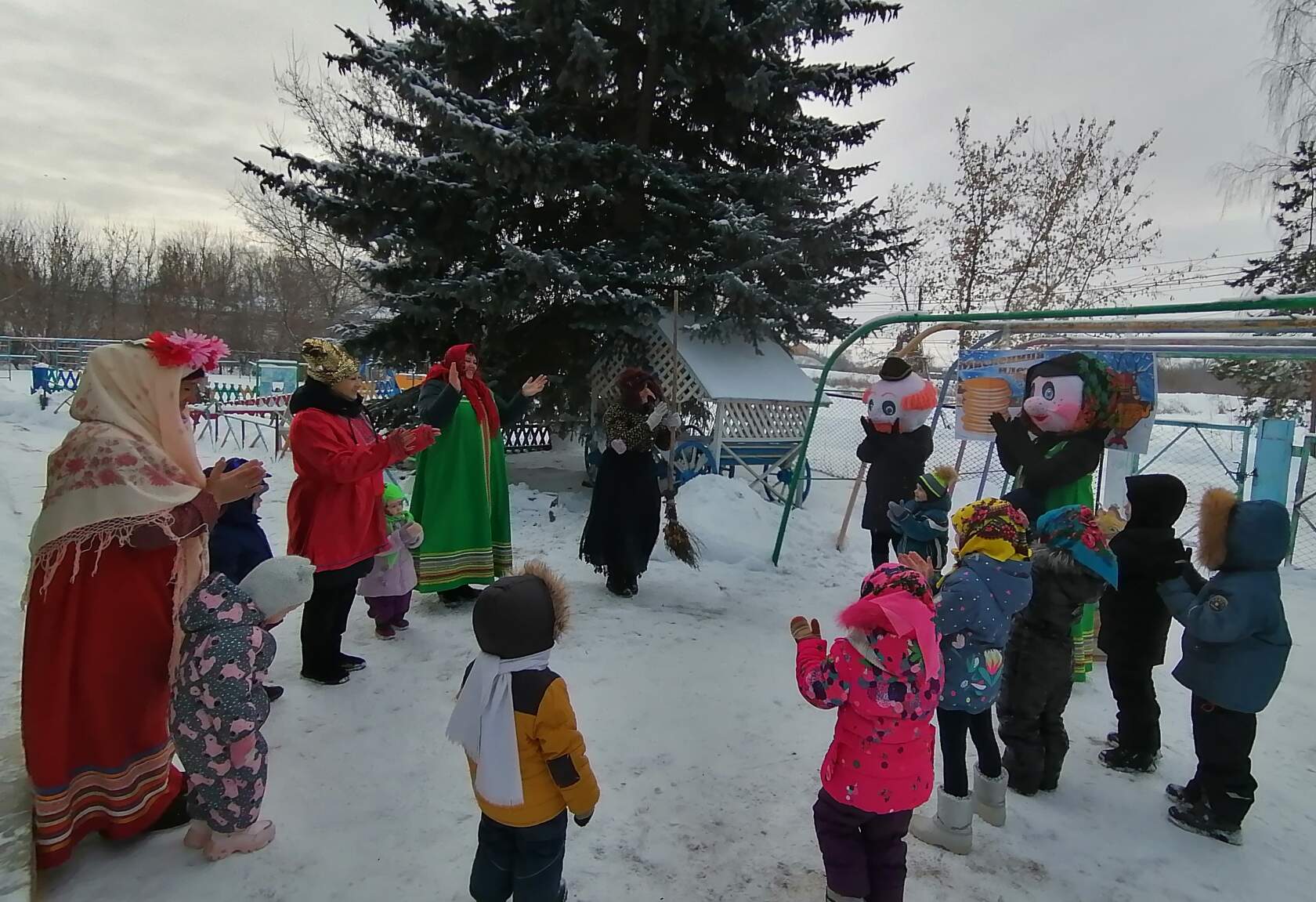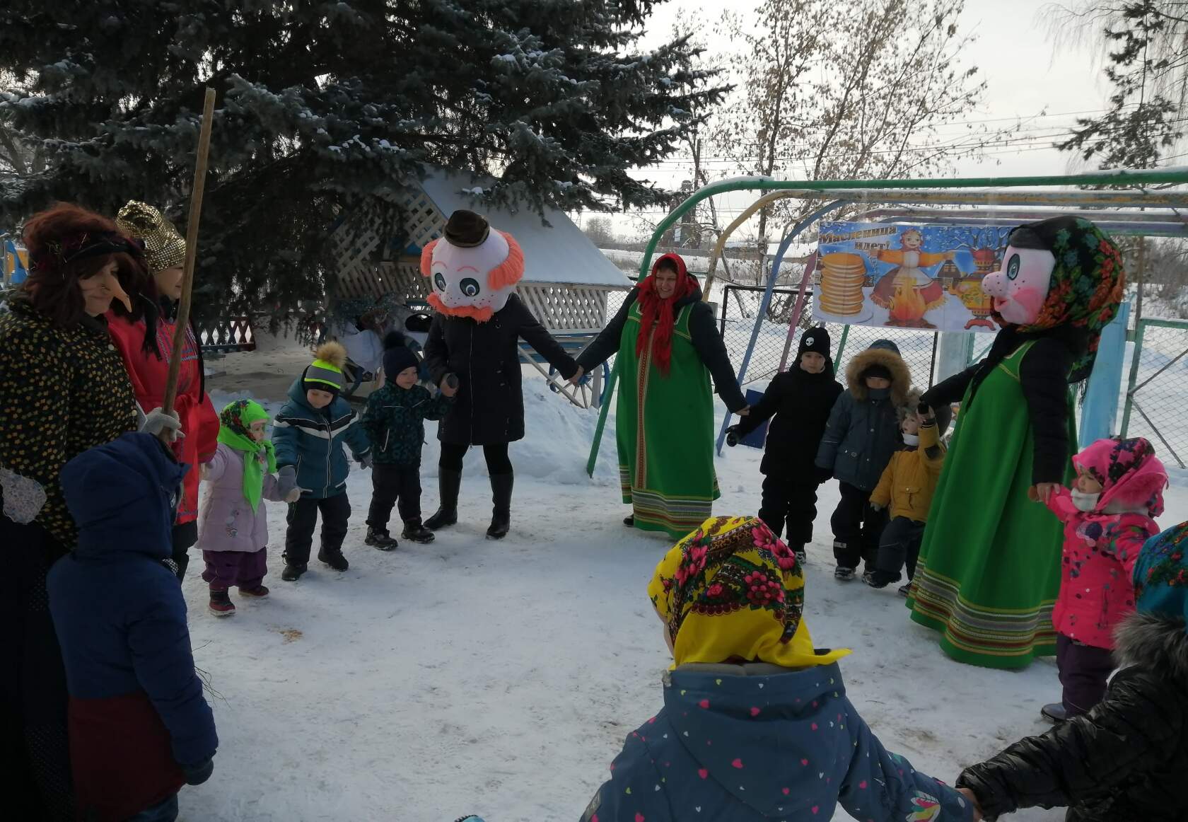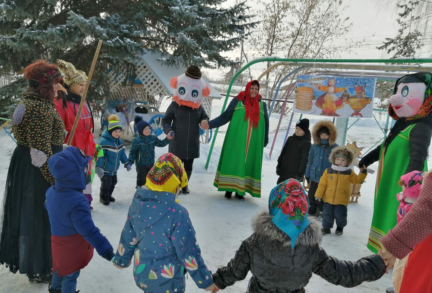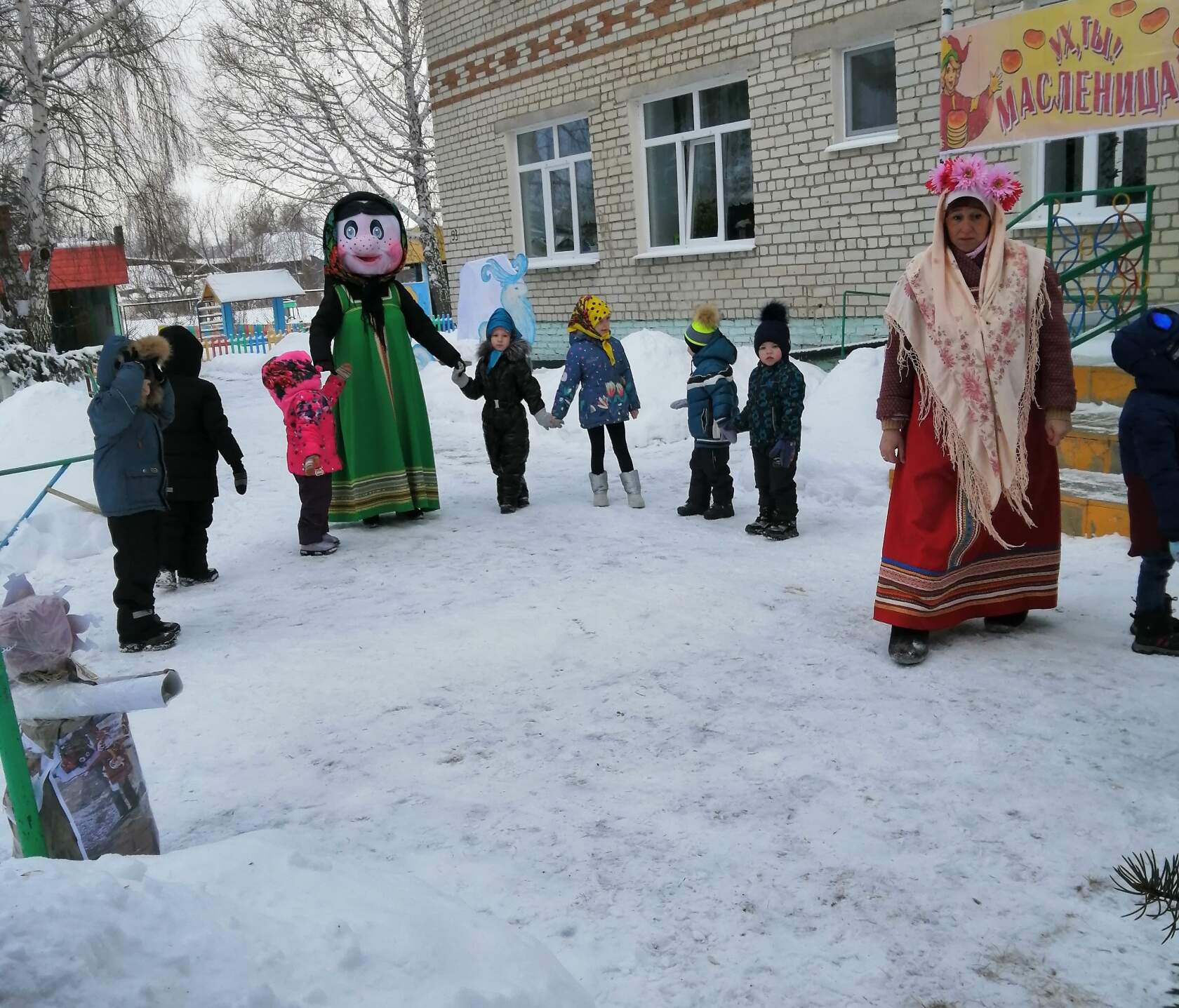 Ежегодное проведение «Масленицы» в нашем детском саду стало традиционным и любимым для детей. Работники детсада вызвали восторг и веселье воспитанников, нарядившись в народные костюмы и переодевшись в сказочных персонажей. Малыши водили хороводы, играли в народные игры. Особый восторг и веселье вызвала еще одна гостья – Баба-Яга, дети не испугались и даже потешались над чародейкой и дразнили ее. Традиционно праздник закончился поеданием вкусных и ароматных блинов, которые с любовью приготовили повара детского сада