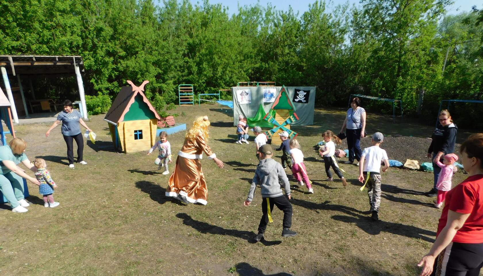В рамках спортивной субботы проведена весёлая, спортивная квест-игра с родителями «В поисках клада». На пути повстречались баба Яга, лиса, Бармалей и волк. Выполнив все задания сказочных героев, дети с родителями добрались до клада со сладкими угощениями и весёлой семьёй устроили чаепитие.