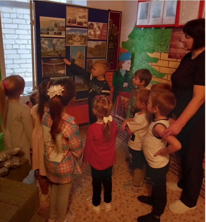 Интересный и познавательный рассказ о битве за Сталинград услышали ребята старшей группы: об упорных и кровопролитных боях за каждый дом, за каждый квартал города; о героях Якове Павлове и доме Павлова,который стал одним из символов Сталинградской победы; о Василии Зайцеве - советском снайпере, уничтоживший более 250 солдат, офицеров и снайперов противника.